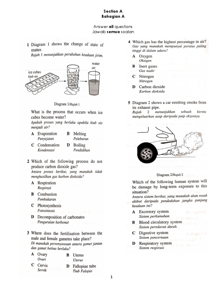 Jawab dengan membaca dahulu arahan yang. Form 2 Science Exercises Questions Answers. Latihan Soalan Sains Tingkatan 1 Jawapan.